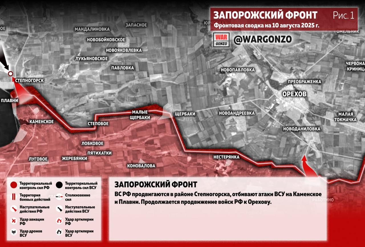 Фронтовая сводка 10.08.25: Продвижение ВС РФ под Ореховом и Степногорском, бои в Щербиновке и Волчанске. Успехи на Сумском направлении. (14 видео)