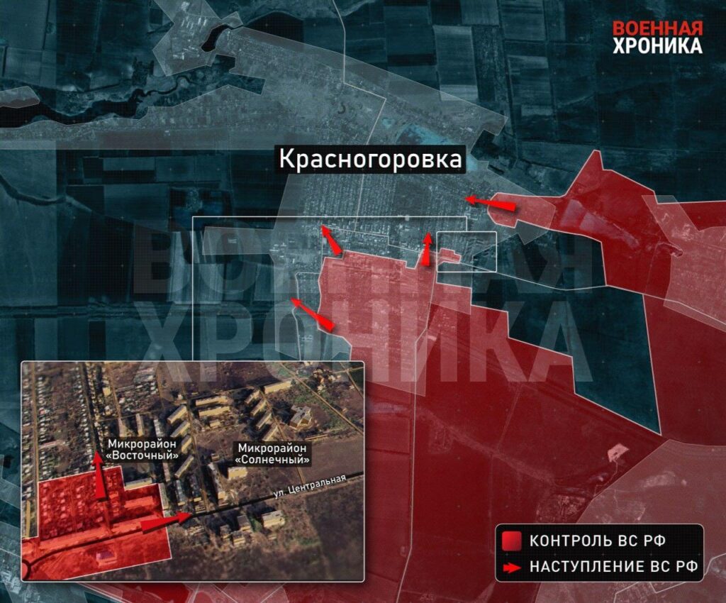 ВС РФ используют «авдеевский приём» для окружения ВСУ в Красногоровке. Российские войска используют ту же тактику нарезания секторов, что и при зачистке авдеевских дач и промзоны.