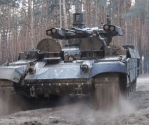 Поражение Ланцетом украинского танка южнее Часов Яра