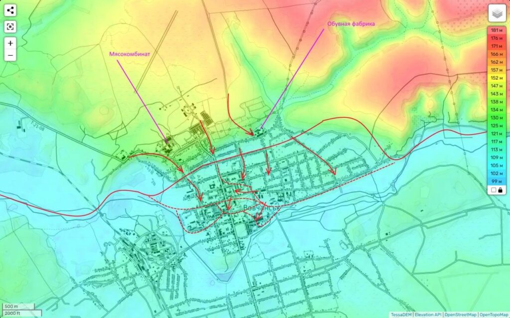 Да, наши сумели продавить его позиции вдоль реки и взяли под плотный огневой контроль последний полуживой автомобильный мост (вместе с укрепом опирающимся на медгородок) через Волчанку и часть механического завода. Но у ВСУ есть еще пятачок, на котором они оказывают нам очень ожесточенное сопротивление.