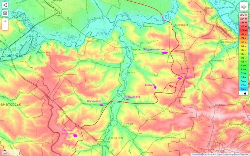 Причем наши силы взяли по сыти во фланг позиции ВСУ в н.п. Спорное. К тому же мы находимся по отношению к противнику на высоте. Думаю, долго он там не задержится.