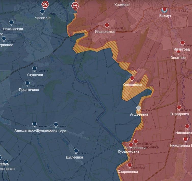 Сводка по обстановке. Часов Яр, Ивановское(Красное), Клещеевка, Андреевка. Часов Яр — даже находясь вдали от этого населённого пункта, чувствуется как его раскатывает наша дальнобойная артиллерия. Пожелаем военной удачи десантникам 98й дивизии и подразделениям, действующим на его флангах.