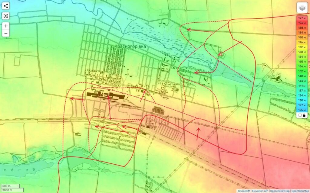 Здесь основных участков два — Красногоровский. После штурма и зачистки от противника территории завода огнеупоров, северная часть города находится в полуохвате. Снабжать гарнизон здесь ВСУ становится все труднее и труднее, но они не сдаются и не отходят. Здесь наши части провели успешную атаку севернее линии прудов, что по задумке, после дальнейшего успешного нашего продвижения, должно привести к отходу противника из оставшейся части города.