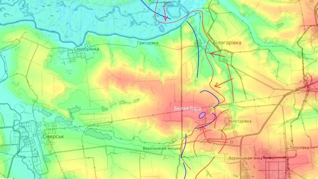 Сейчас на протяжении второго месяца бои за Белогоровку и гору Белую приняли системный характер и за последние три недели (с момента моего последнего обзора с этого участка) наши части нечасто, но по чуть-чуть продвигаясь вперед смогли занять часть села и с востока даже выбить части противника из его передовых окопов на горе. И вплотную приблизиться к укрепрайону на самой ее макушке. До него осталось всего метров 200. По сути один рывок.