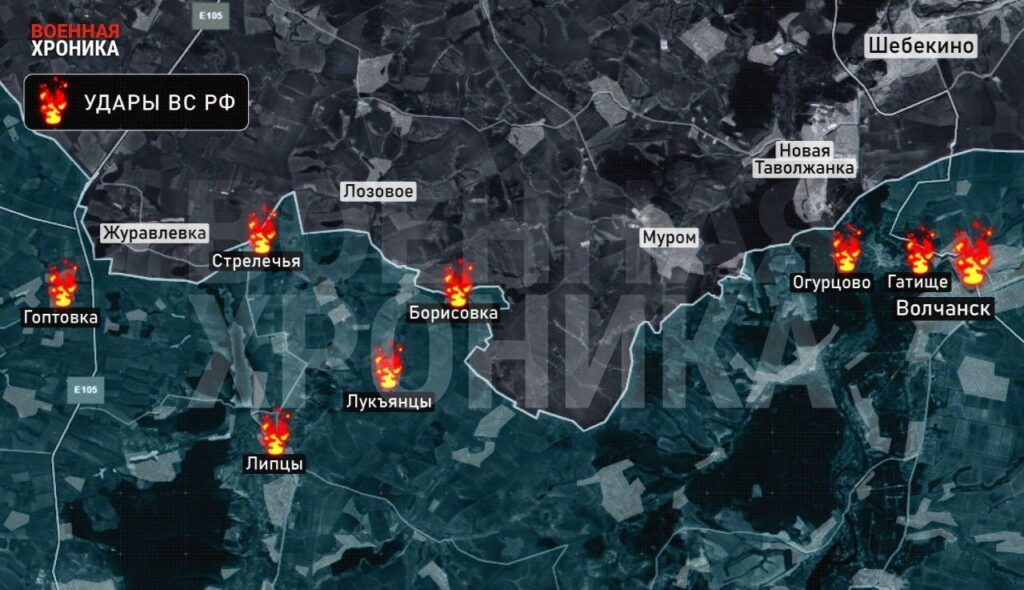 — Практически сутки артиллерия ВС РФ и авиация работают по целям на территории Украины. Активно отрабатываются Волчанск и окрестности, а также ряд прилегающих городов и сёл.