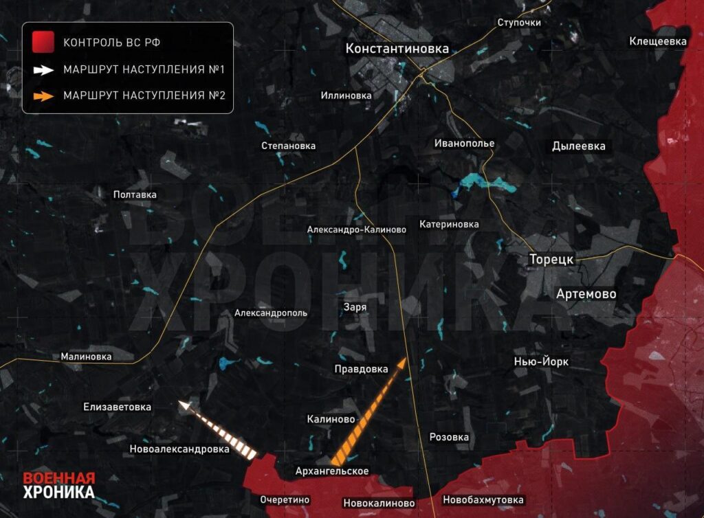 Во-вторых, чуть больше 12 км от текущей позиции российских войск остаётся до трассы Н-20 на ту же Константиновку.