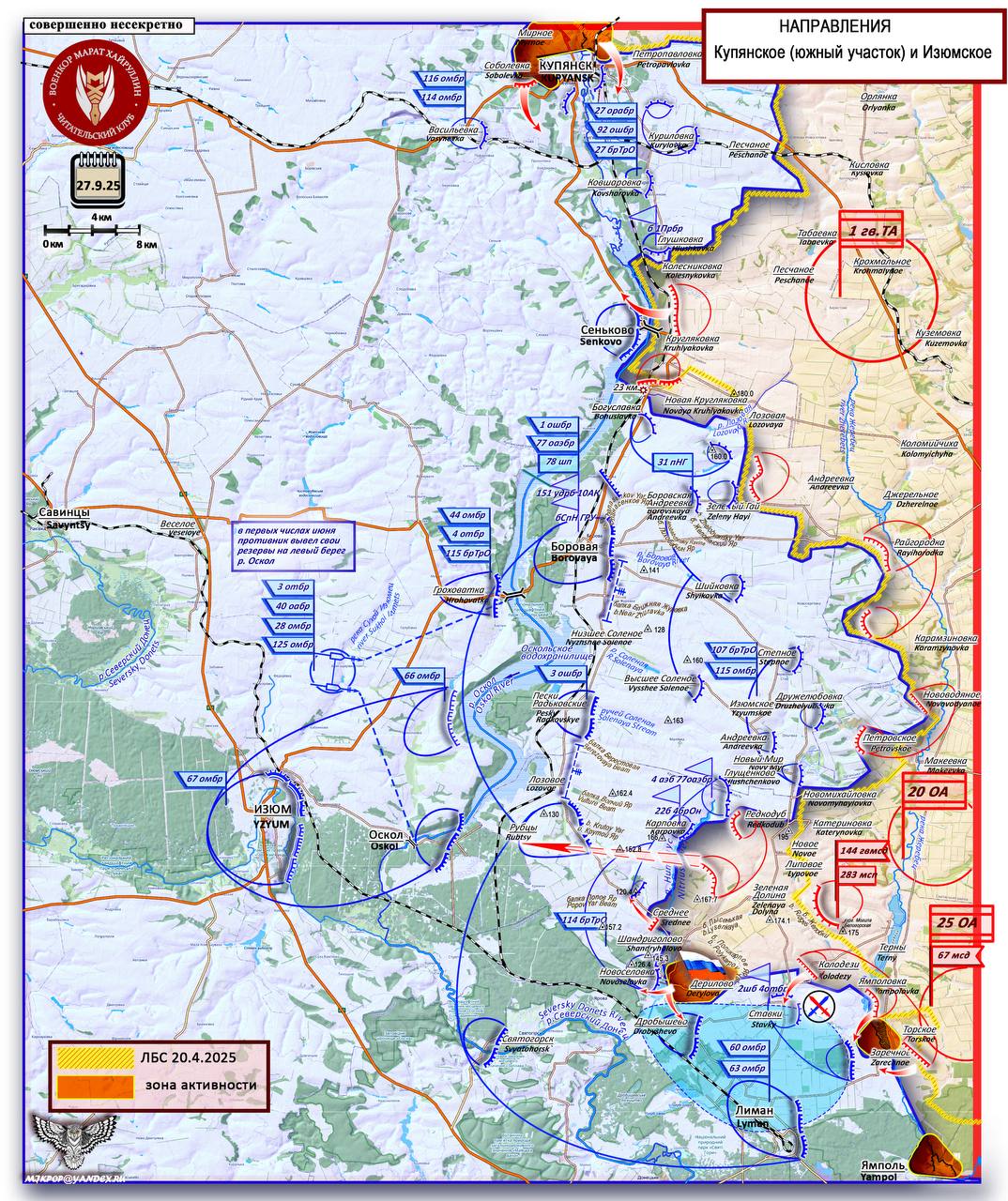 Однако конфигурация линии соприкосновения подсказывает, что российское командование стремится превратить преимущество противника в его главную слабость. Продвигаясь по линии Зеленая Долина – Рубцы, ВС РФ нацелены на переправы у поселка Оскол. Одновременно с этим планируется отсечь Боровской выступ от соседнего, Купянского, в районе переправ у Сеньково. В случае успеха река Оскол, служившая для ВСУ надежным тылом, станет естественной преградой, которая затруднит маневр и снабжение собственных войск, фактически заперев их в формирующемся котле.
