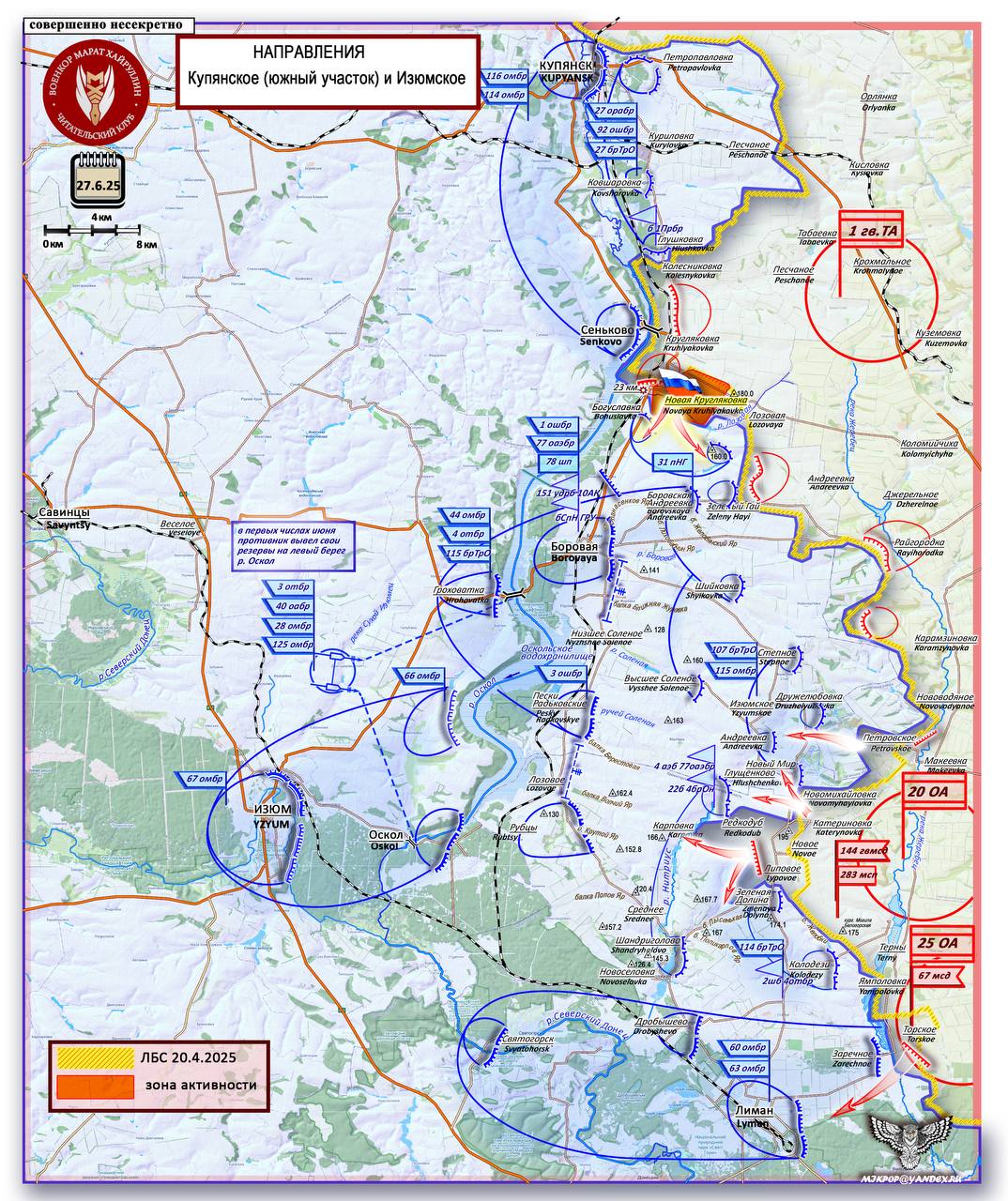 В этом районе ВС РФ вышли к р.Оскол и контролируют мост через реку Сеньково-Кругляковка, железную и автомобильные дороги, рокадой связывающие Купянское и Изюмское направления.