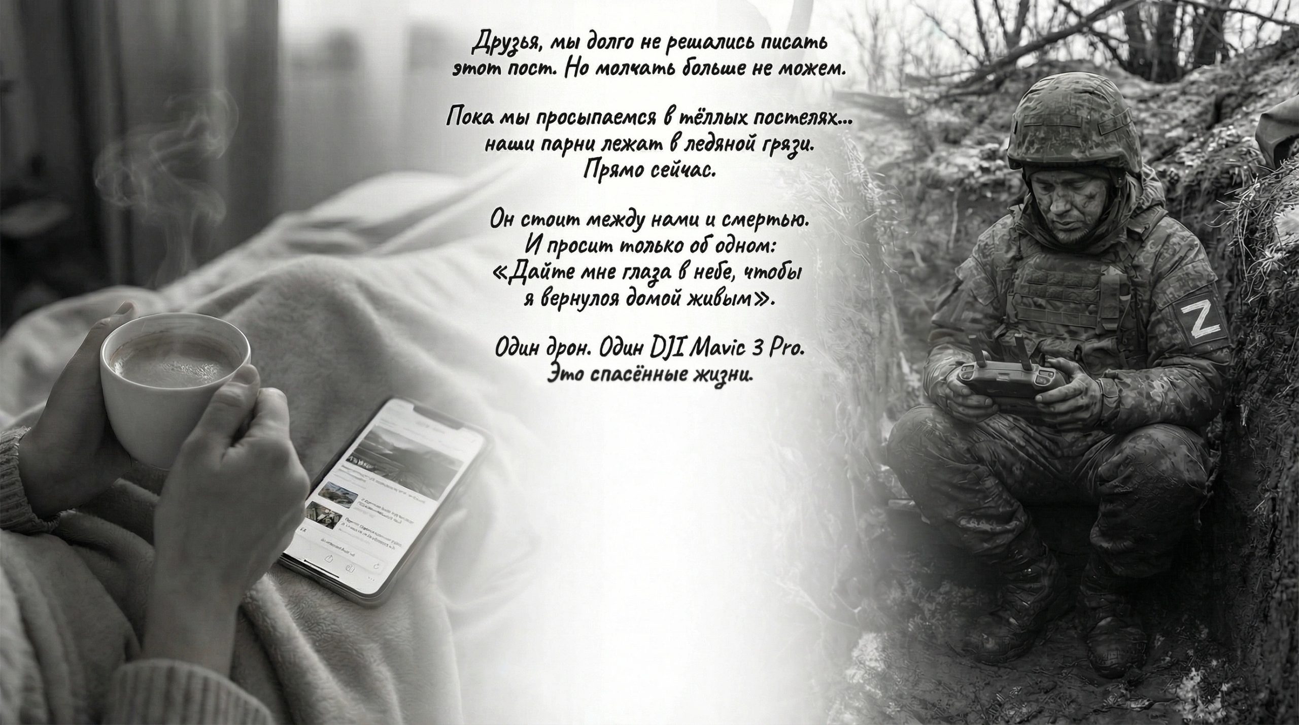 Пока мы просыпаемся в тёплых постелях, пьём утренний кофе и листаем ленту — наши парни лежат в ледяной грязи. Прямо сейчас. В эту самую секунду.