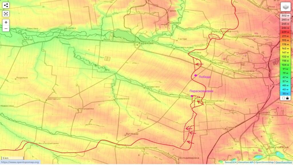 Тем не менее, вчера наши части сумели зайти в Парасковиевку и закрепиться в восточной части этого населенного пункта. С учетом того, что сам по себе он небольшой, то, вероятно долго его противник удерживать не сможет.