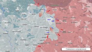 Под Северском российские части вплотную подошли к окраинам Звановки. Одновременно с этим продолжается штурм на подступах к Дроновке и расширение зоны контроля в лесных массивах севернее Ямполя, который также атакуется с востока.