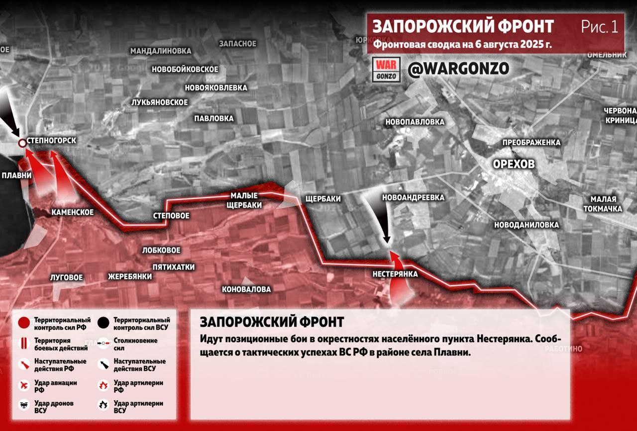Фронтовая сводка и карта боевых действий на Украине на 06.08.25
